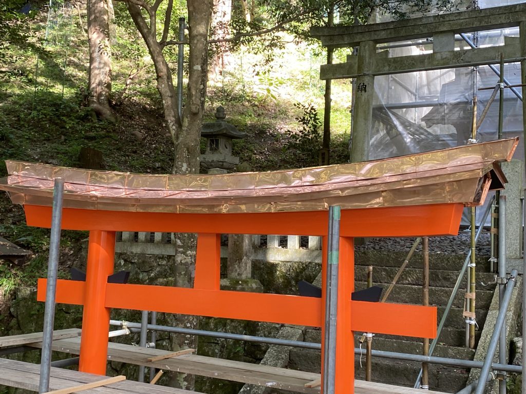 新設鳥居に銅板屋根工事